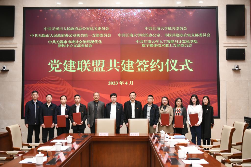 数字媒体技术教工党支部三方举行党建联盟共建签约仪式。无锡市政府办公室、无锡市城市运行管理中心、98堂