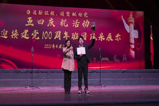 班团风采展示以青春心向党做引,共包含三个篇章。《五四精神,初心弥坚》篇将波澜壮阔的历史生动展现,把大家带入了那风雨激荡的岁月中,表达出新时代青年学子理想远大、信念坚定,为国家和民族提供不断前进的动力。《两弹一星精神,使命有我》篇,学生们通过歌声表达出对祖国最真挚的热爱,弘扬艰苦奋斗、勇于攻坚、自力更生、无私奉献的精神。《抗疫精神,力量担当》篇以抗疫精神为激励,阐释了五四精神在新时代的解读,唱出新时代最青春有力的声音。经过评委打分,数媒1901、1902班荣获一等奖,计科2001、2002,2003、2004班等2个班获得二等奖,数媒2005、2006等4个班获得三等奖,其余班级获得优秀组织奖。活动在合唱《我和我的祖国》歌声中圆满落下帷幕。