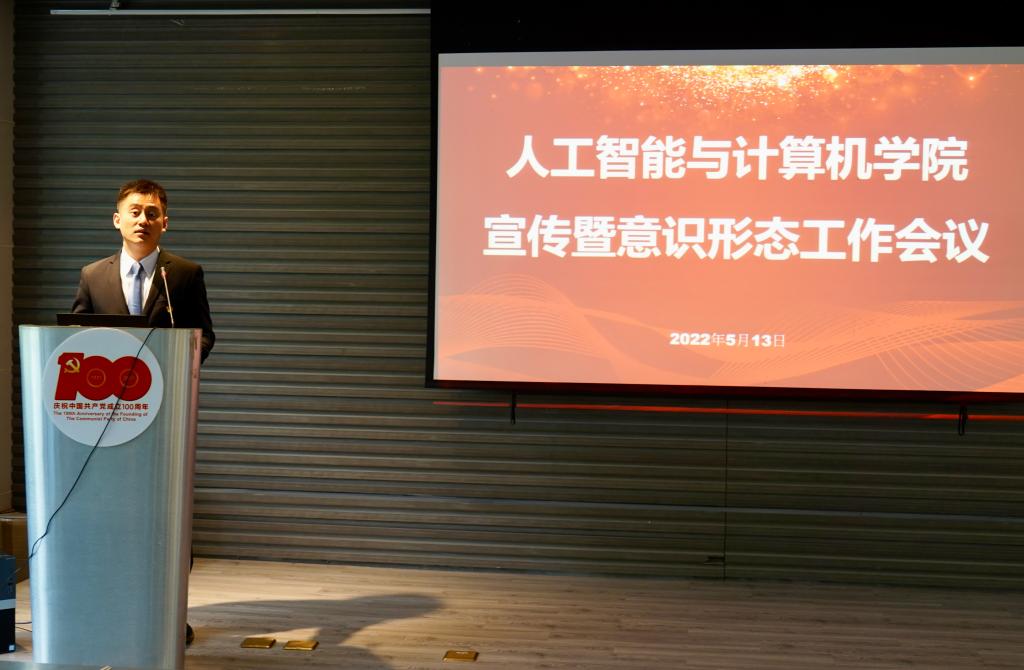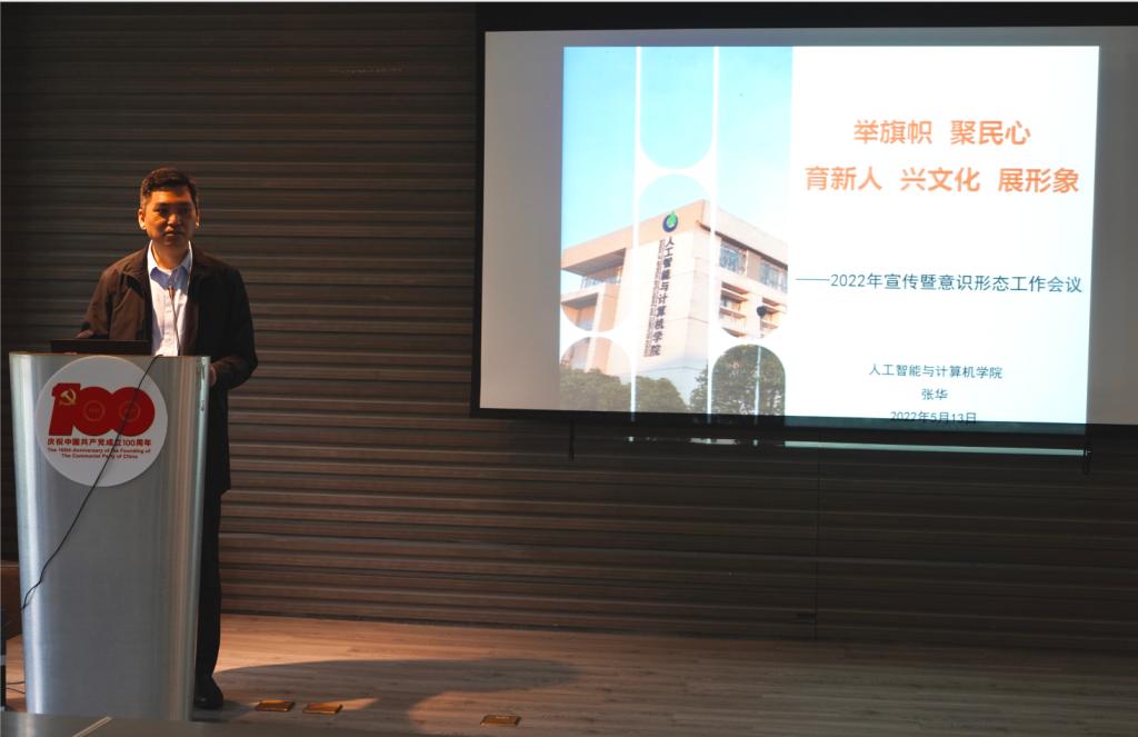 学院党委书记张华做工作报告。宣传思想工作具有“举旗帜、聚民心、育新人、兴文化、展形象”的使命任务,是建设具有强大凝聚力和引领力的社会主义意识形态的重要手段,也是贯彻落实立德树人根本任务的重要途径,要以习近平新时代中国特色社会主义思想为指导,不断加强宣传思想工作,引领高校舆论,掌握意识形态话语权。学院宣传工作一是要进一步提高思想认识,把握时事要求、顺应时势变化,聚焦主线,传声立言;二是进一步提高宣传意识,不断强化宣传本领和能力,围绕学院教学、科研等中心工作做好宣传的策划和准备,提升宣传的效果;三是进一步提高意识形态警觉性,加强对意识形态的学习和甄别,强化审核流程,严格内容把关。