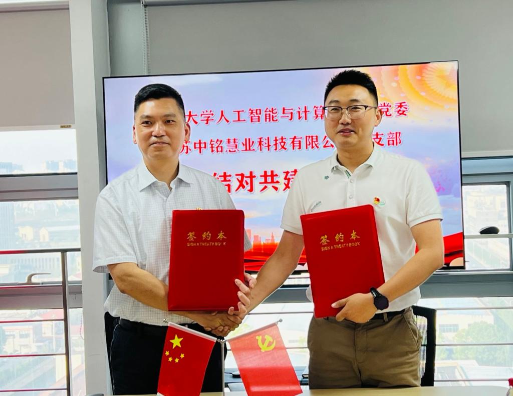 2022年6月15日下午,学院一行来到中铭慧业科技有限公司,举行支部共建签约活动,学院党委书记张华、计算机教工党支部书记暨人工智能系主任宋威教授、专职组织员缪可嘉参加活动,活动由中铭慧业科技有限公司党支部书记孙祖清主持。