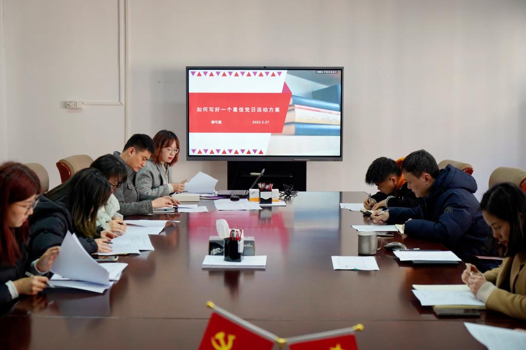 支部书记工作例会上,专职组织员缪可嘉以《如何写好一个最佳党日活动方案》为题,就近期各支部申报最佳党日活动的工作进行了业务能力培训,并对近期各支部如何开展好组织生活会和民主评议党员进行了工作提醒,同时也进行了近期常规工作的布置。