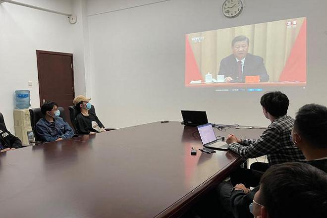 青年学子怀着激动的心情,采取线上线下集中学习的方式,全程观看了直播。