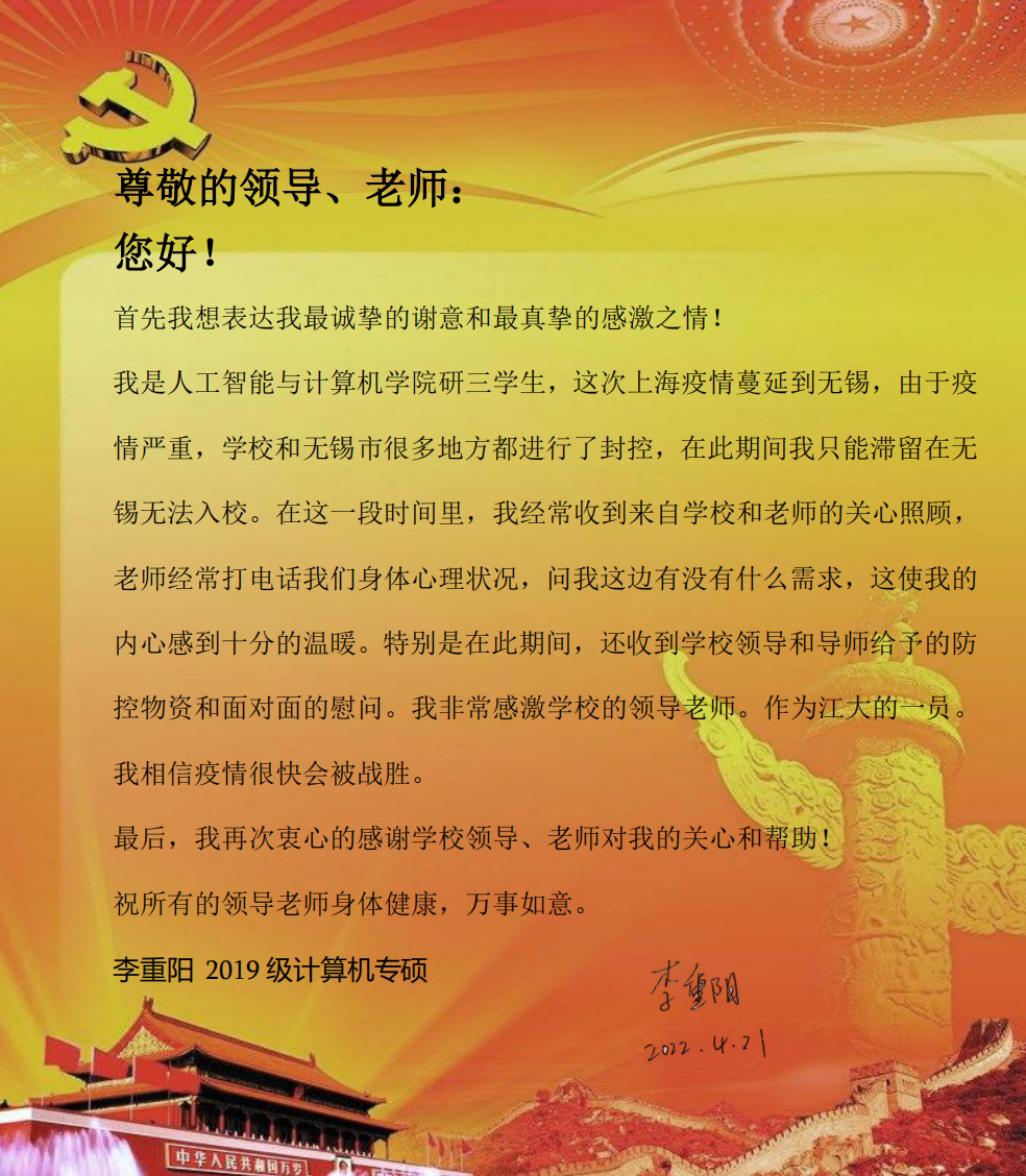 滞留校外学生感谢信