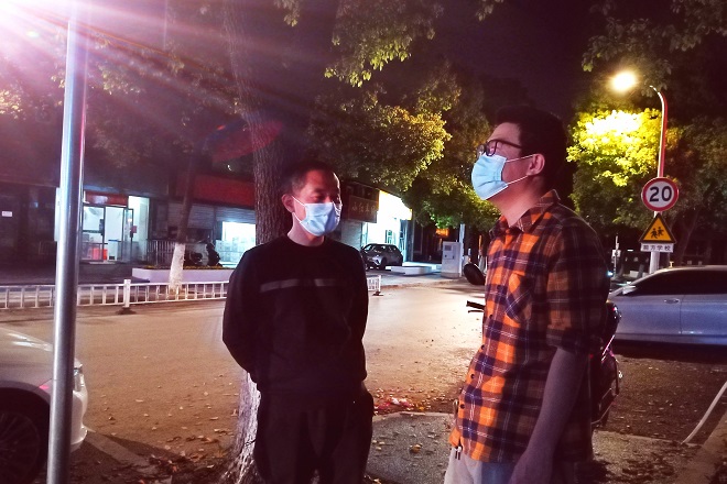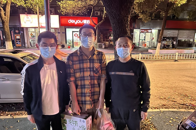 在校内轮岗结束,方伟老师出校时已是晚上7时许。他顾不得疲劳的身躯,驱车赶往超市采购慰问物资。晚8时许,先驱车赶往融创茂,后又驱车20余公里赶往火车站附近,慰问研三在外学子。每到一处,方伟老师一行送上慰问品和慰问金,详细询问了学生的身心状况、居住环境、饮食情况、科研进展等,叮嘱学生要严格遵守属地管理的疫情防控政策,以积极的心态面对暂时的困难。老师们传达了学校现阶段的管控政策,对学生展现出的积极配合给予了高度评价,告知学生学校永远是同学们的强大后盾,有任何问题及时和辅导员、导师联系。同时,方老师还对学生的毕业论文、毕业答辩事宜进行了现场指导与回应。