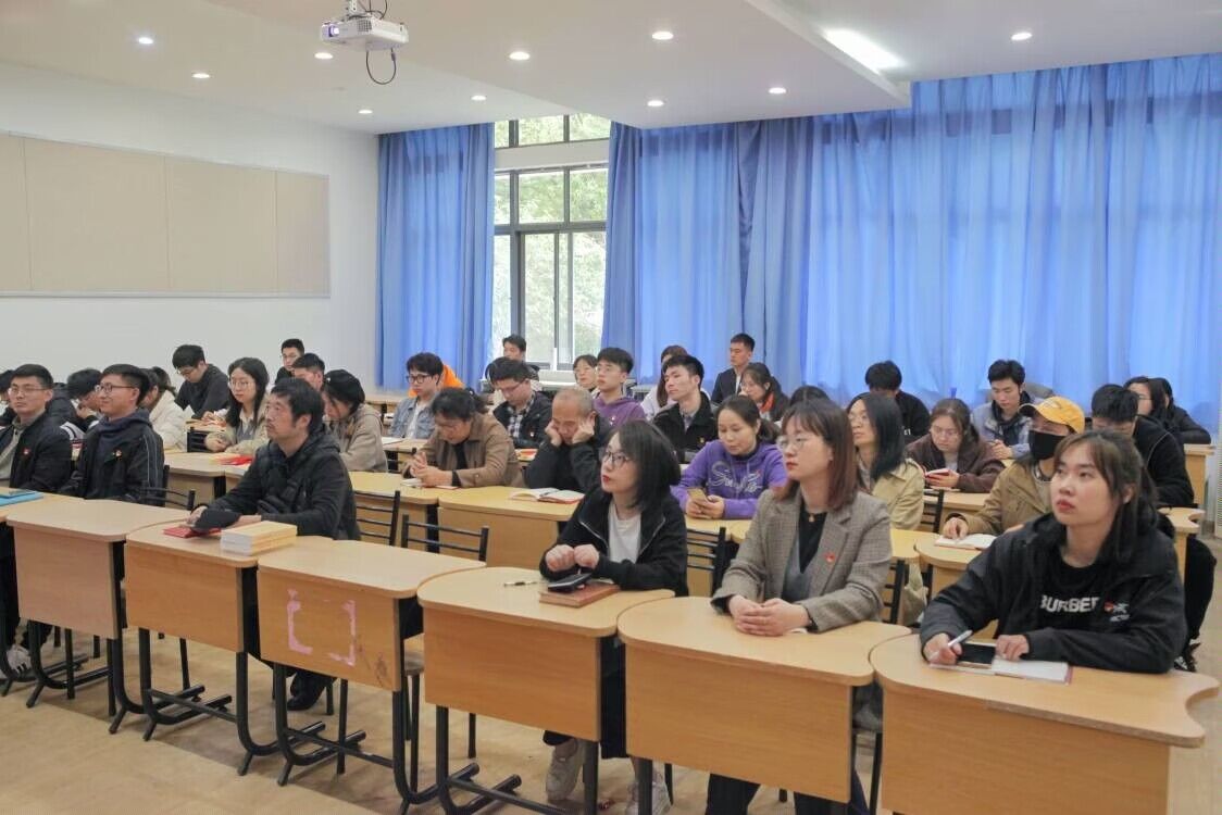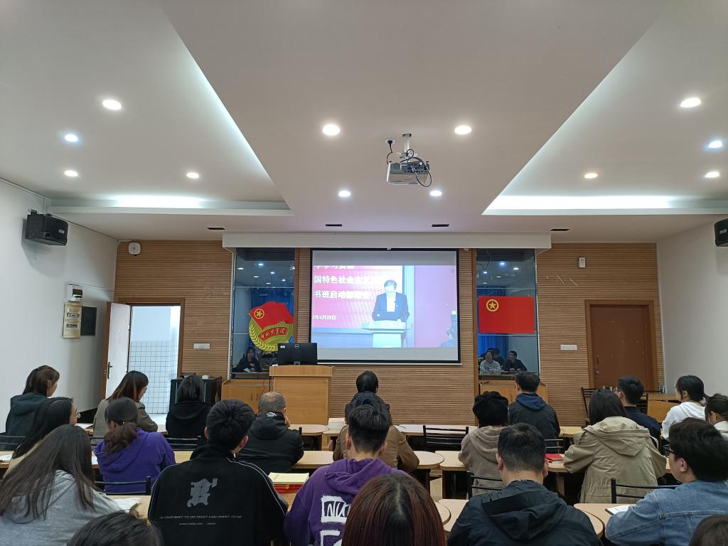 各支部书记、支部委员,辅导员、师生代表在学院B109,集体收看98堂