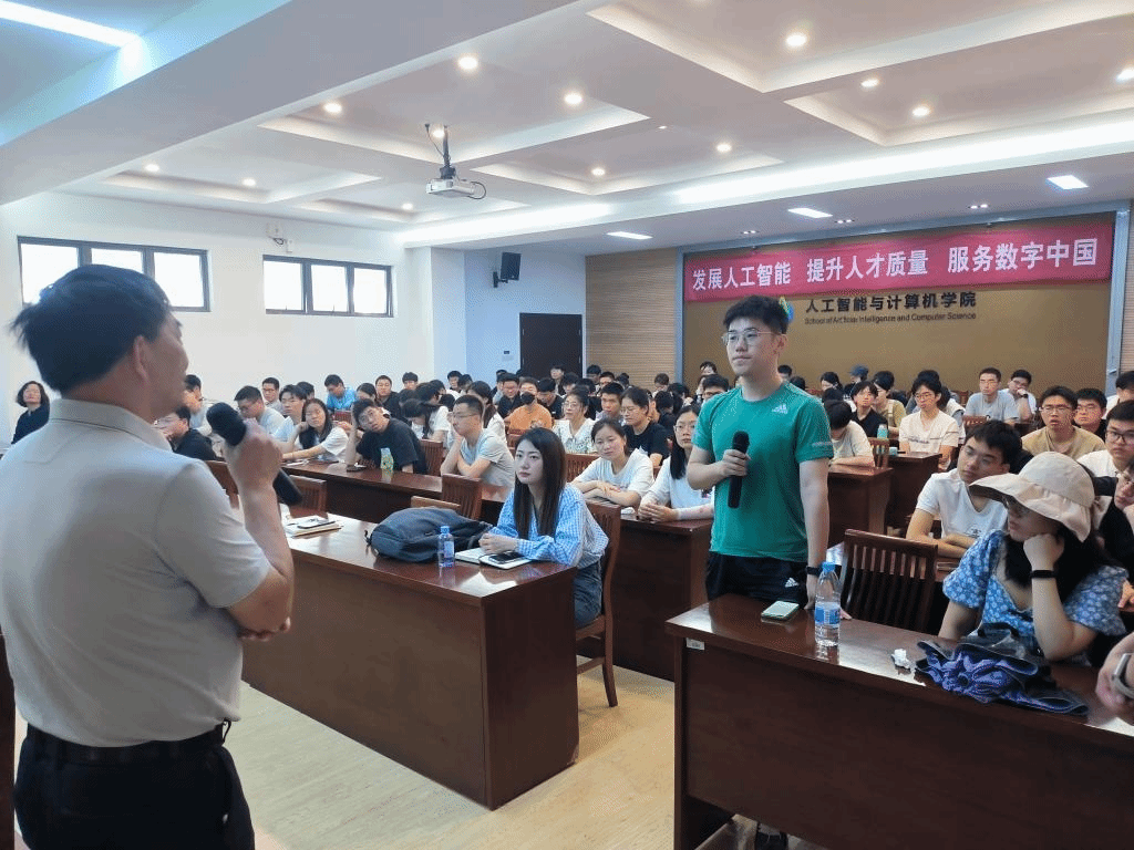 在师生交流互动环节,同学们纷纷提出对于GPT和自然语言处理的疑惑,张教授逐一答疑解惑,进一步分析GPT的相关理论和技术问题,寄语同学们要抓住本质,坚持长期主义,注重科学积累。