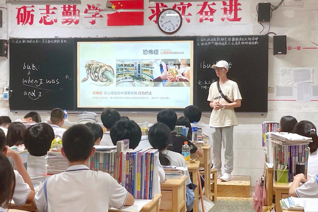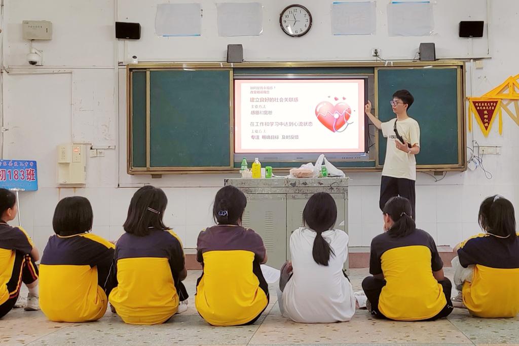 组建“以爱赋能,心向未来”大学生心理健康服务暑期社会实践团。7月14-19日,实践团成员分赴湖南省衡阳市衡东县第一中学和楚天中学,开展心理问卷调查、心理健康知识普及、团体心理辅导等心理健康教育系列活动。