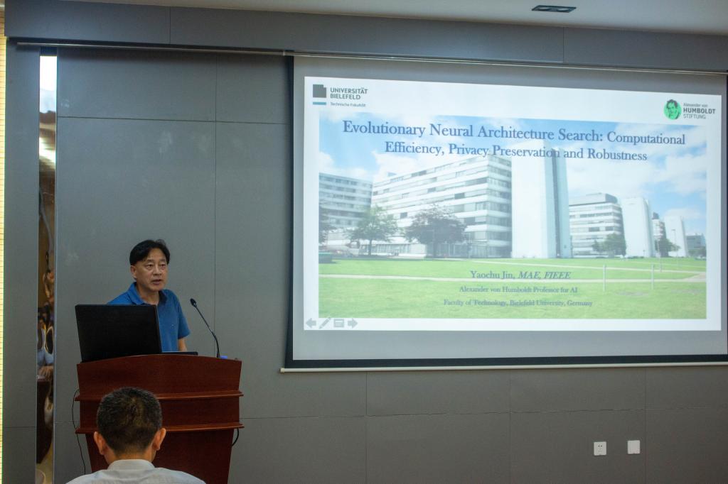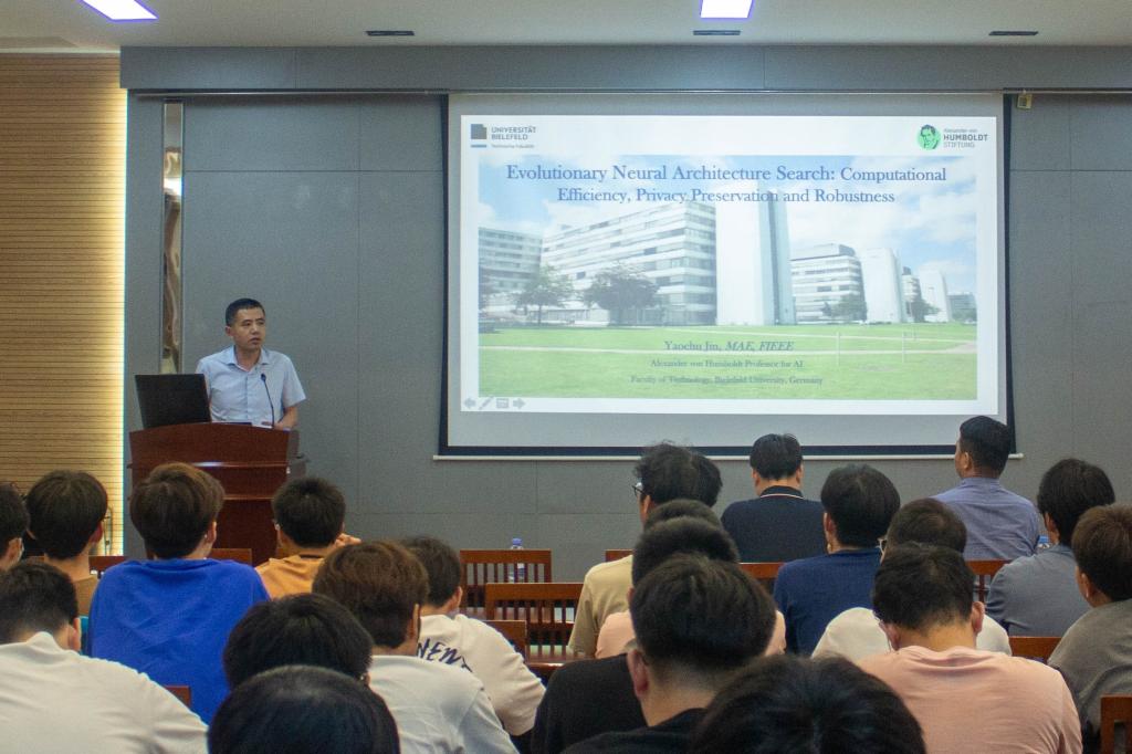 师生作《Multi-objective evolutionary neural architecture search: Communication efficiency, privacy preservation, and adversarial robustness》主题讲座,讲座由学院副院长谢振平主持,副院长钱鹏江、宋威,教师代表王士同等70余名师生参加。