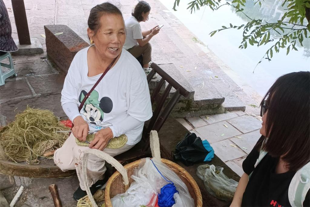 8月6日,实践团抵达凤凰古城,领略大美苗疆。建国初期的苗人沿袭老祖宗的传统,在无棉无稻草的艰苦环境中就地采集野草,自己编织草鞋,代代相传。朴实无华的草鞋见证了苗族在山区因陋就简、因地制宜的生存哲学和筚路褴褛、团结奋斗的民族精神。