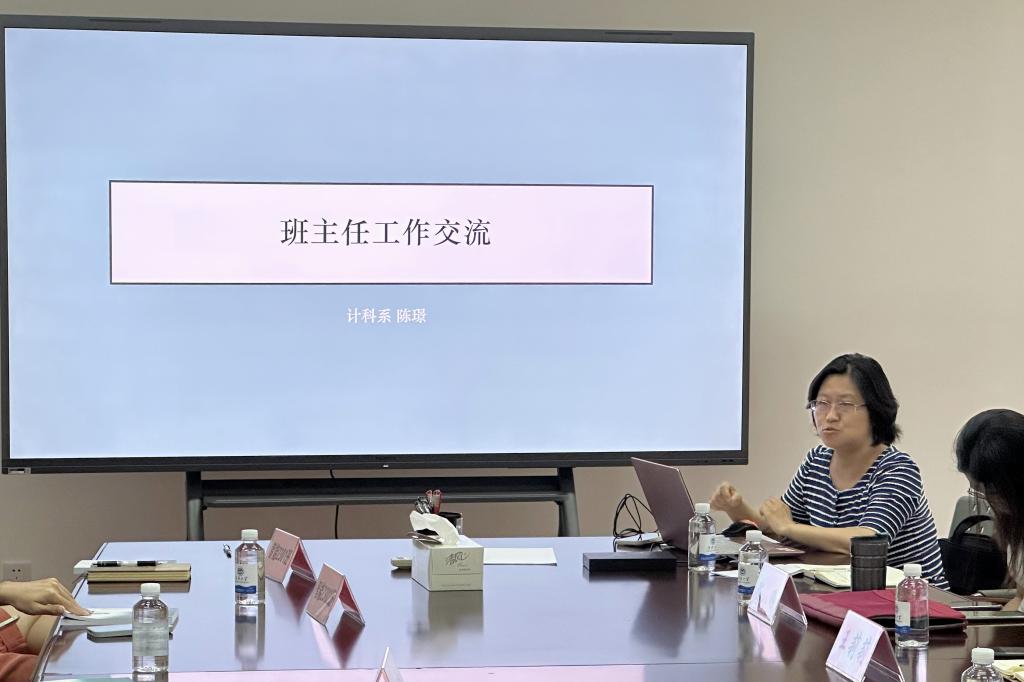在B318会议室召开2023级新生班主任、副班主任工作交流培训会。学院党委书记张华,党委副书记兼副院长王莉莉,老生班主任代表、计算机专业系主任陈璟,2023级全体新生班主任、辅导员、副班主任参加会议,会议由2023级新生辅导员刘震主持。