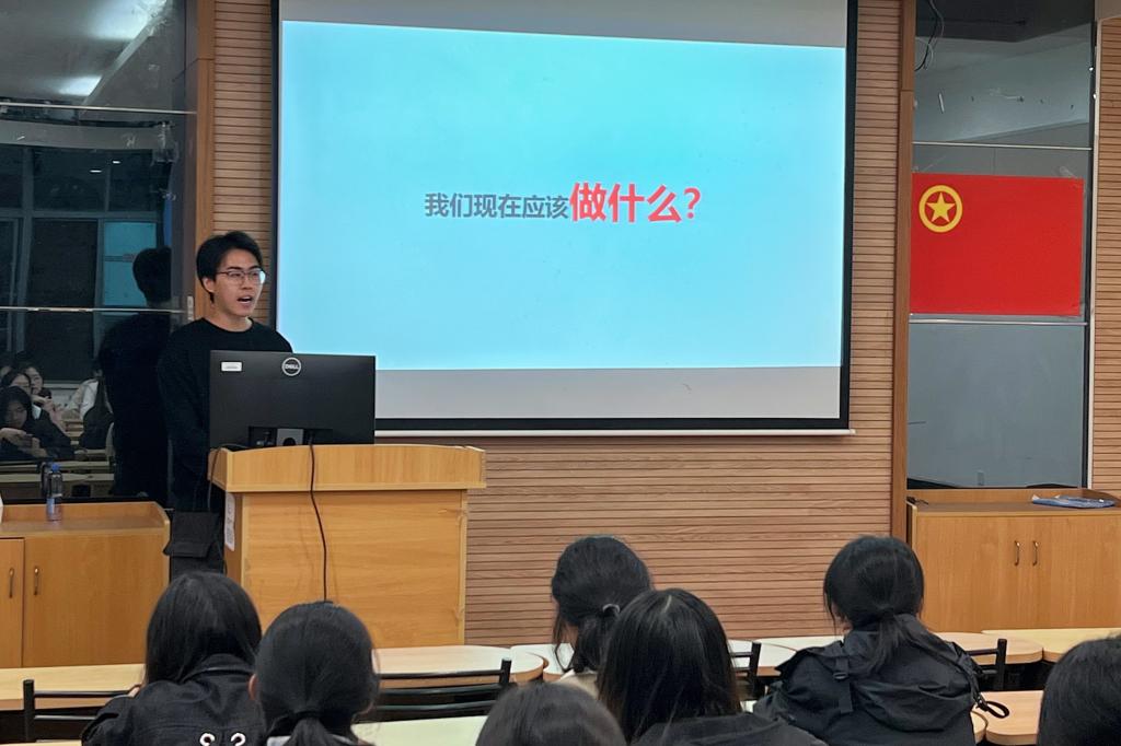 于学院楼B109报告厅举办保研经验分享会,2020级保研学生代表马佳芮、杨家震、李慧敏、杨钧硕担任主讲人。本科生辅导员米宁主持活动。