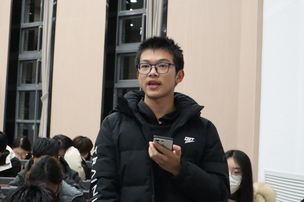 数媒2002班的李子睿同学以自身学习历程为例,阐述了进入顶尖院校所需的三驾马车:英语、数理能力和编程能力。他强调除了关注这些核心能力外,深入了解目标领域、关注前沿科研动向同样至关重要。他鼓励同学们勇敢跨出舒适区,挑战自我,方能在未知的领域中开拓创新,取得卓越的成就的同时保持不骄不躁,以自由、开放、创新的态度要求并规范学习生活。谈及直博经历时,他鼓励大家勇敢尝试,勇敢的尝试始终是成功的最快捷径。在面对挑战时,坚定内心、永不放弃,才能够披荆斩棘,攻克难关,这种精神和态度将是通往成功的道路上的强大助力。