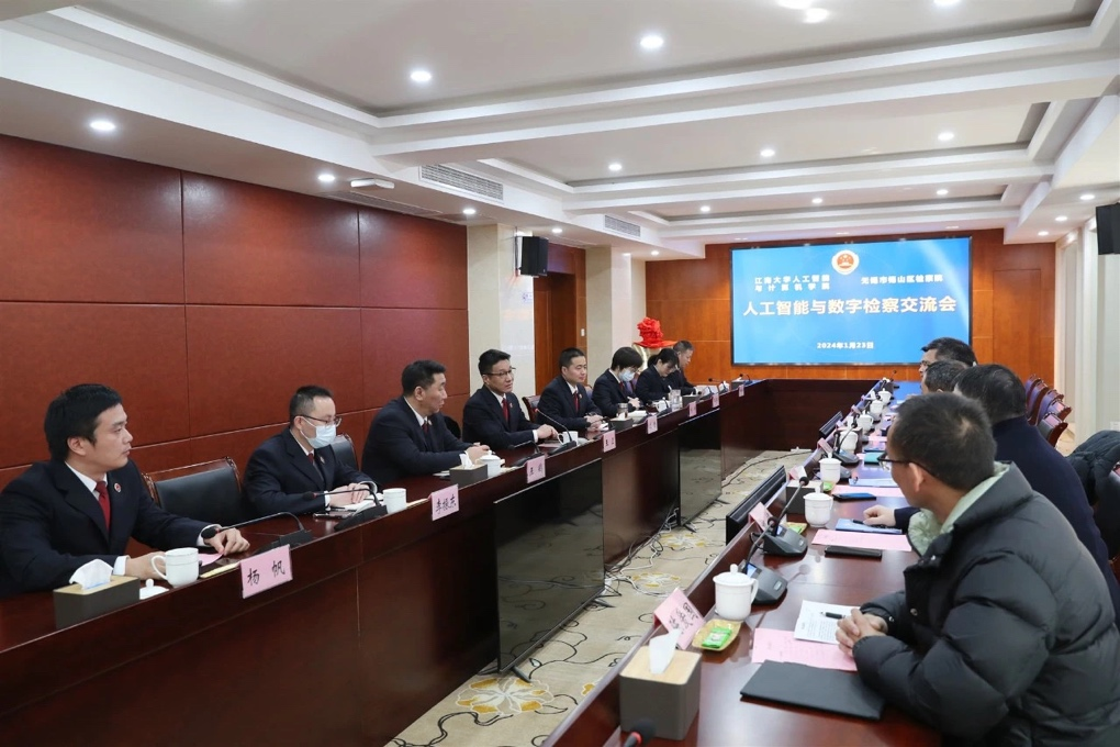 的大力支持,希望双方进一步就党建、数字化建设、实习实践基地共建等方面加深合作。方院长对双方合作目前所取得的成绩表示肯定,期待未来能够继续发挥学院的技术优势,与检察院业务有效融合,在“市校共建”的背景下助力无锡市本地的社会治理与现代化建设。张书记希望以本次揭牌为契机,拓宽“检校”合作的深度和广度,未来开展更多技术应用的实景,为司法工作提供服务支撑,为国家培养优秀人才。随后,双方其他与会人员也进行了卓有成效的沟通和交流。