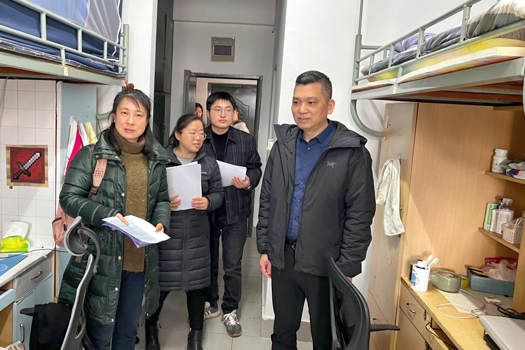 走访过程中,张华、王莉莉和学生进行面对面亲切交谈,与后勤宿舍管理员交流,详细了解学生的学习、生活、思想状况以及目前学生所存在的困难,并向同学们强调,宿舍是同学们的“第二个家”,要高度重视宿舍防火用电安全,提高反诈意识,通过保持干净整洁的宿舍环境固化健康的生活习惯,多主动与班主任、辅导员、任课老师交流;要多关心室友,互帮互助,共同营造文明安全、健康和谐、向善向美的宿舍文化氛围。班主任们在各自班级所在宿舍与同学们进行亲切交流。