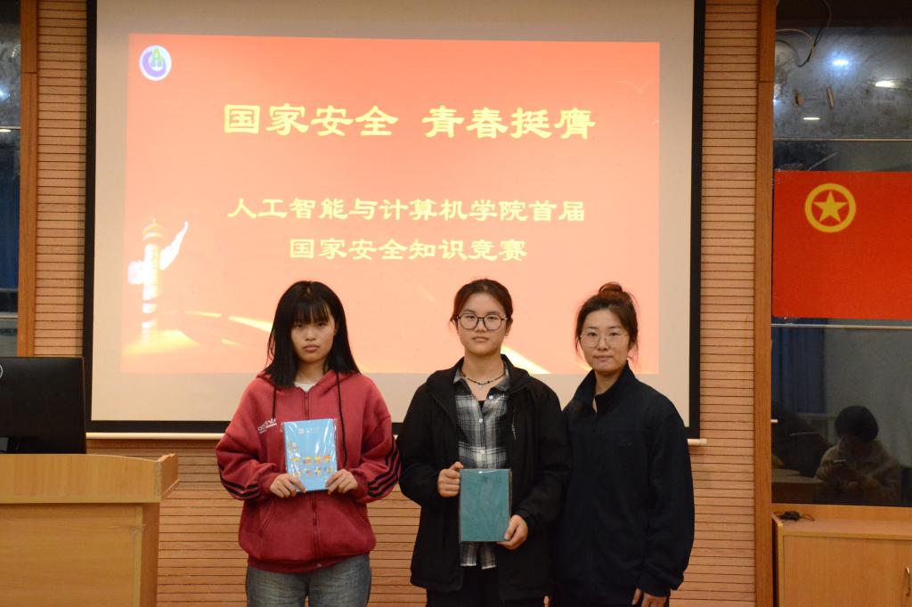 比赛过程中,同学们争分夺秒,积极作答,竞相展现丰富且扎实的国家安全知识水平。最终环工2101班刘赵通获得一等奖;智能2304班俞思瑶、大数据2202班张心蕊获得二等奖;微电子2101班王玮琛、临床2302班苗育豪、临床2303班陈凯文获得三等奖。“爱心强国队”获得团体第一名,“科技堡垒队”获得团体第二名,“安全先锋队”获得团体第三名。学院安全稳定工作负责人杨玉莹老师为获奖个人和团队颁奖。