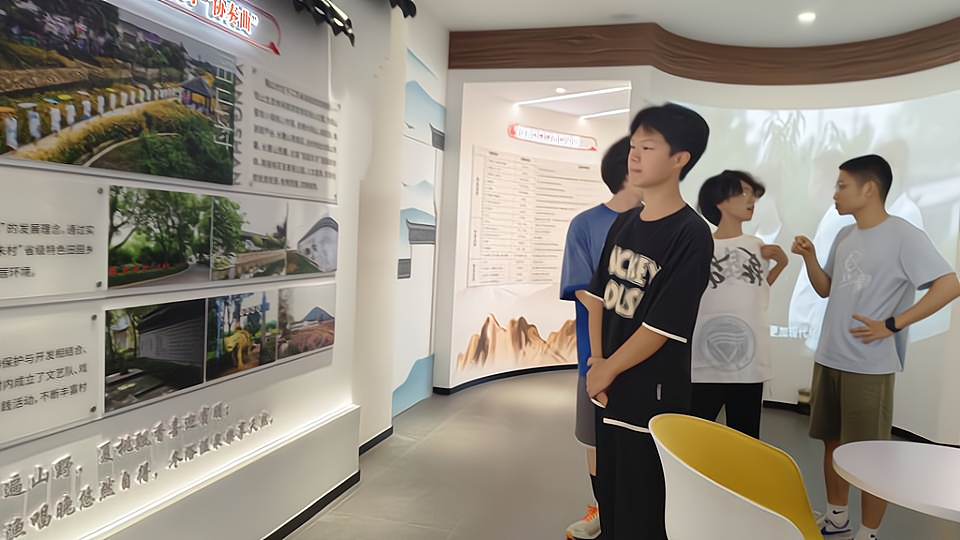 阳山水蜜桃现代科技馆,是本次实践的最后一站。这里不仅展示了水蜜桃产业从种植到销售的全链条智能化解决方案,还通过光影、色彩、造型以及一系列人机交互项目等多种形式,将水蜜桃的生长过程、营养价值以及全自动技术等内容以生动有趣的方式呈现出来,让参观者亲身体验到科技赋能农业发展和乡村振兴的重要意义。