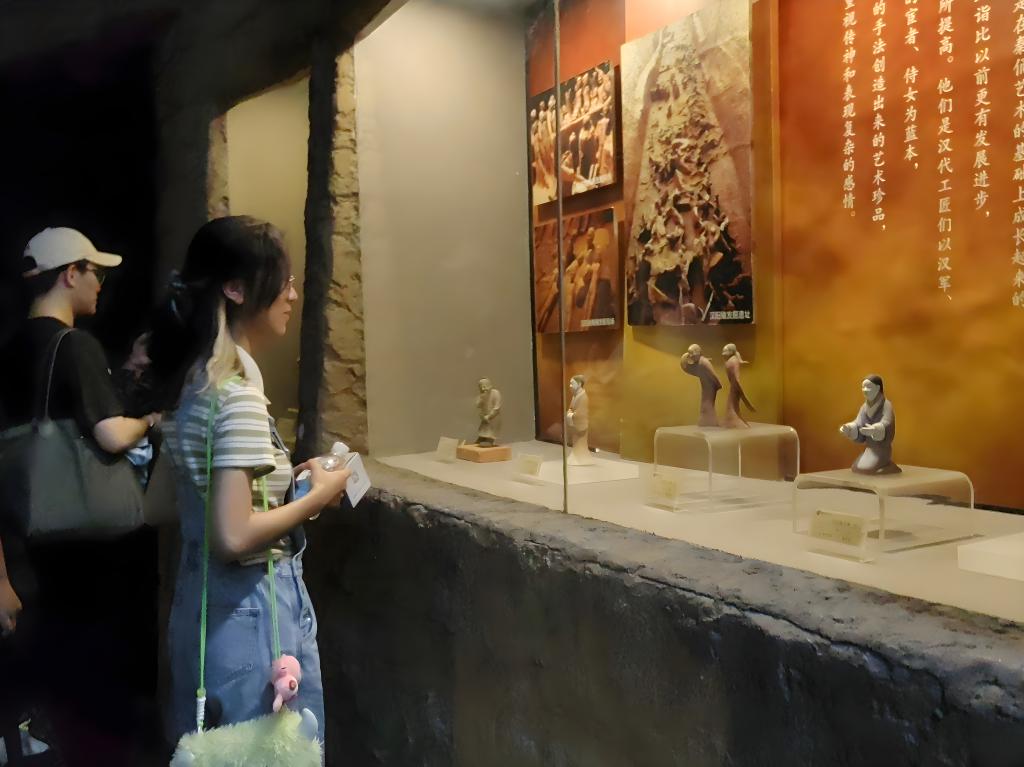 穿越古今,对话艺术。博物馆是历史与文化的重要载体,实践团来到中国泥人博物馆,领略惠山泥人的起源、发展和兴替。馆内近5000件展品,涵盖了泥人艺术的各个流派和时期,令人目不暇接。实践团跟随着讲解员在《大阿福》《一团和气》等经典作品前驻足良久,了解到无锡“阿福”“阿喜”是路路平安,家家幸福的吉祥象征,更被馆内泥人雕刻和绘画工艺的精妙所震撼。在穿越古今的对话中,实践团加深了对惠山泥人非遗文化的认识和了解,惠山泥人不仅是无锡人民智慧的结晶,更是中国传统文化的瑰宝。