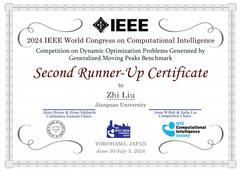 智能学子刘志在WCCI 2024动态优化大赛中获得季军,取得学校在该项赛事上的新突破。
