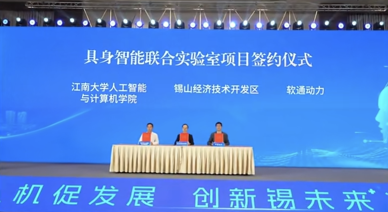 与锡山经济技术开发区、软通动力签署合作协议,将发挥各自优势共建具身智能联合实验室,98堂
